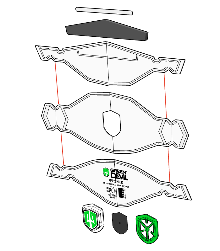 Für die Atemschutz- Faltmasken in den Schutzklassen FFP2 und FFP3 sollte der Tragekomfort verbessert werden und die Corporate Identity-Vorgaben von Green Devil stärker berücksichtigt werden.
