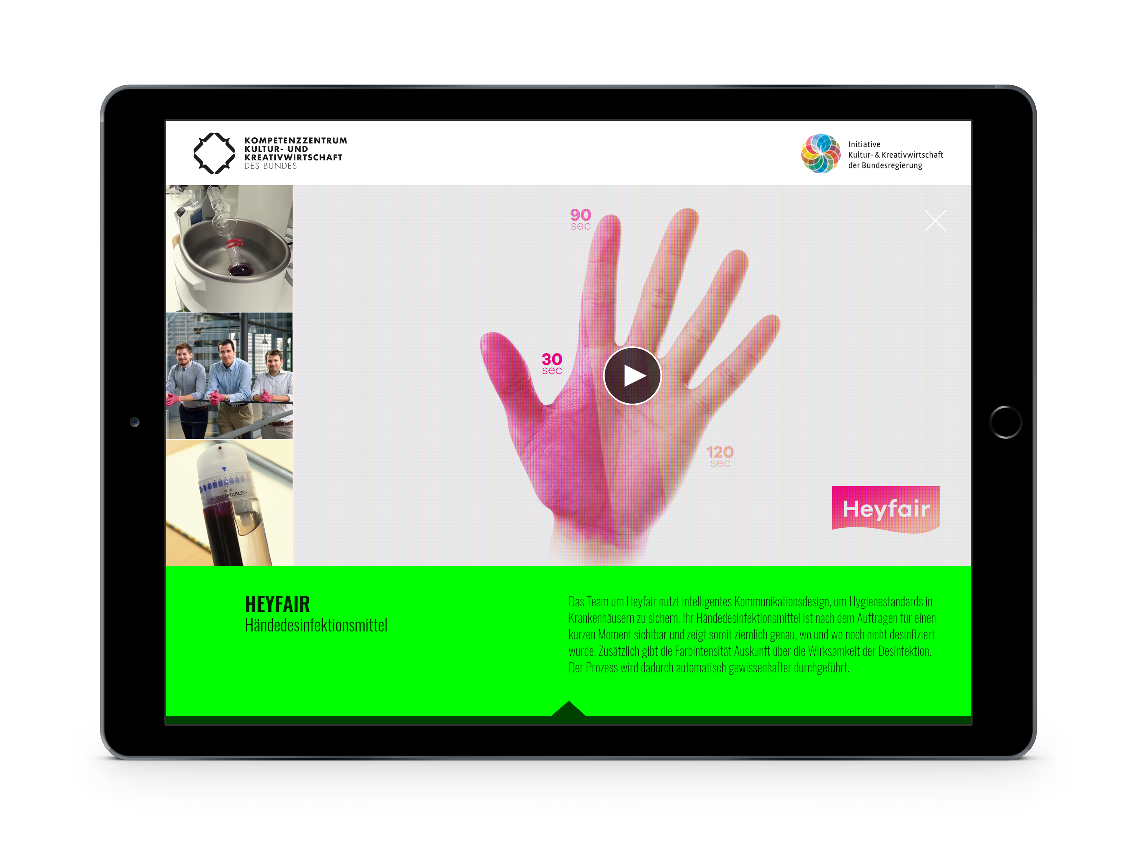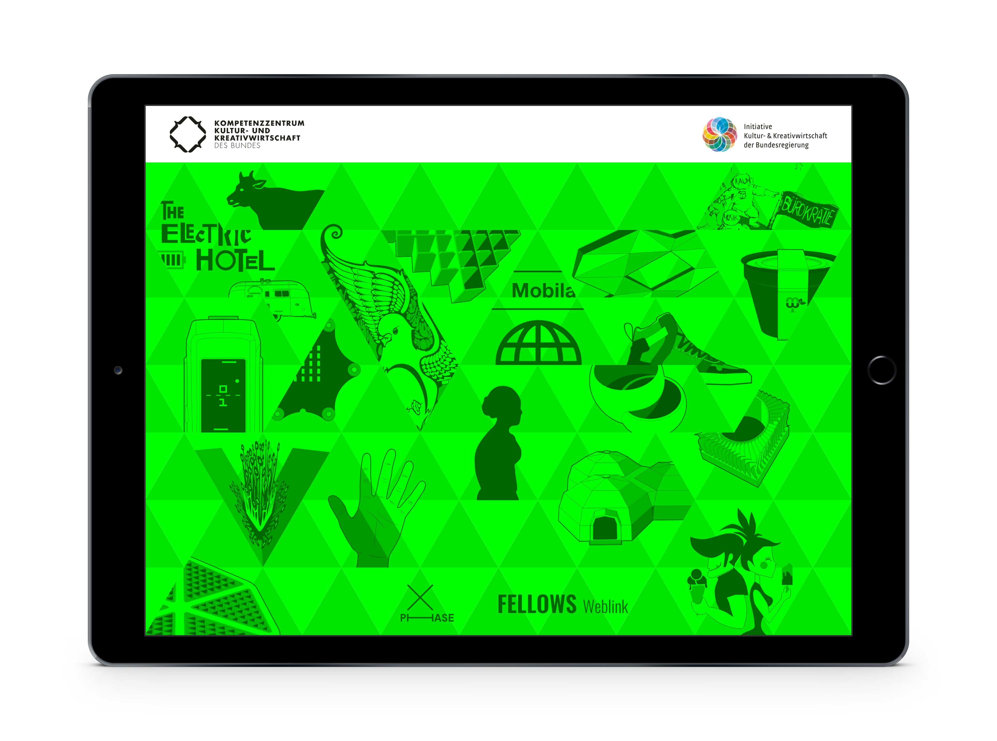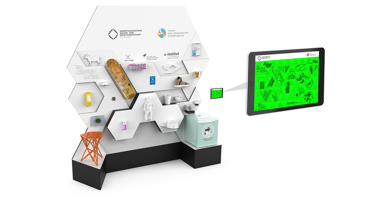 Für das Kompetenzzentrum Kultur- und Kreativwirtschaft der Bundesregierung hat System D ein stationäres Ausstellungskonzept für geförderte Projekte Kreativschaffender entwickelt. Ziel dieser Show-Wall ist es, die Branche der Kultur- und Kreativwirtschaft in ihrer Vielfalt und mit ihrem Innovationspotenzial nicht nur darzustellen, sondern vor allem für Besucher erlebbar zu machen. MIt einer iPad App können weitere Informationen zu einzelnen Projekten aufgerufen werden.