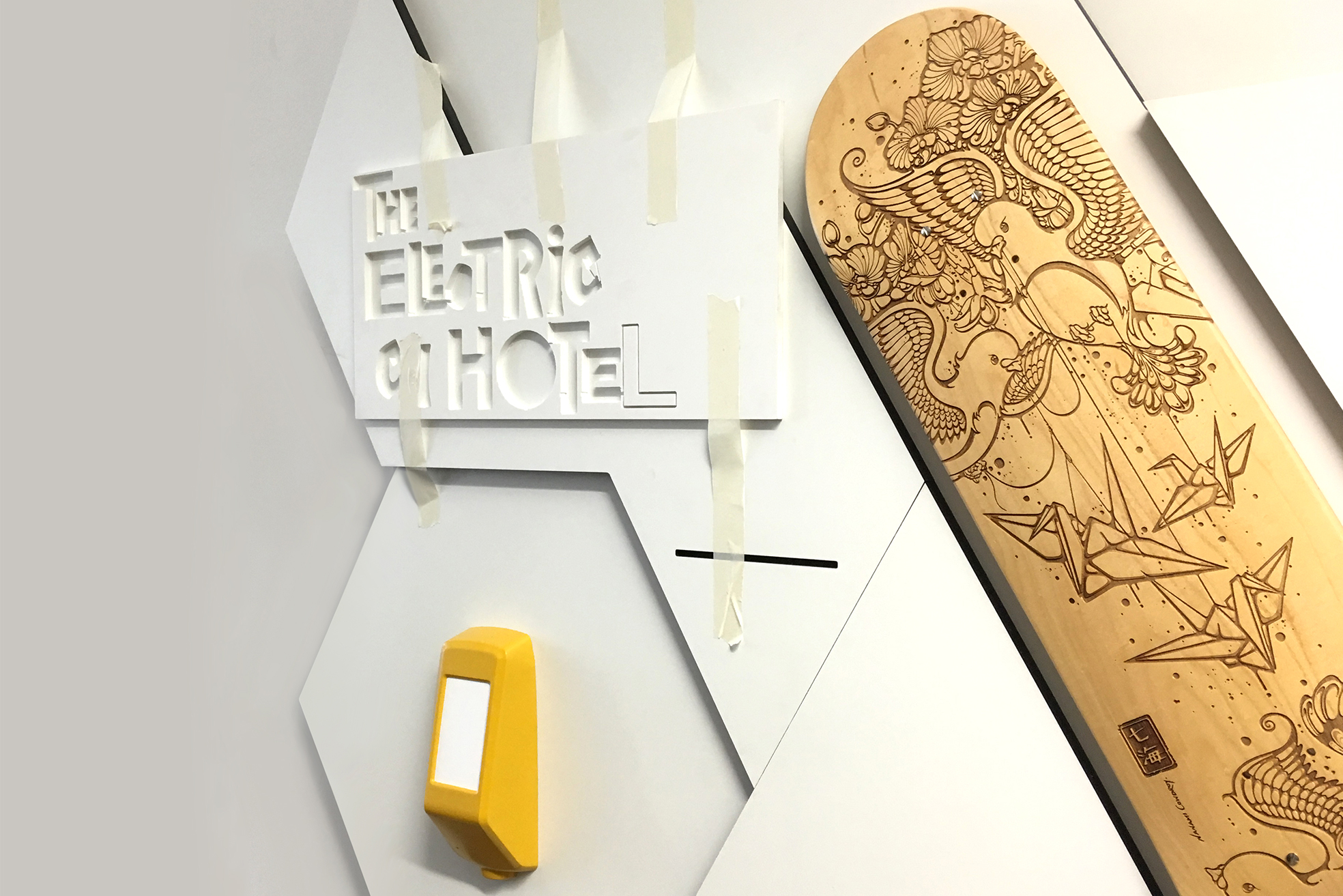 Wenn man auf der iPad App ein Projekt wählt werden die Exponatflächen bzw. Exponate mit individuellen Animationen bespielt und kurze Präsentationsvideos zu den einzelnen Projekten werden auf die obere Fläche der Ausstellung projiziert. Die technische Basis für das Konzept bildet ein durch das Kompetenzzentrum gefördertes Projekt: Edge von Light Instruments. Mit diesem System wird ein Projektor um die Möglichkeiten des Video Mappings erweitert. Das Raster der Exponatflächen basiert auf einem Dreieck, dadurch ist keine der Exponatflächen rechteckig. Mit dem Edge System können die Projektanimationen und Videos kantengenau auf die Zielfläche maskiert werden.