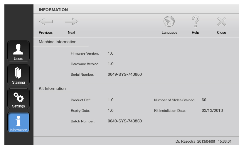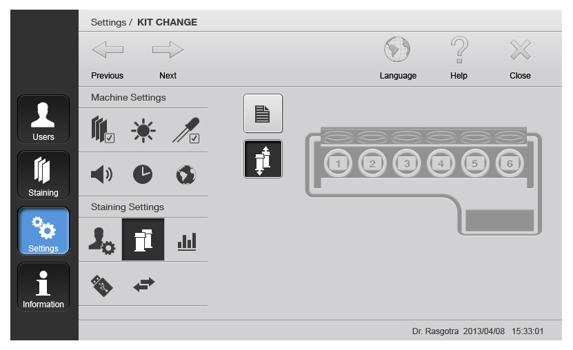 Das User Interface wurde parallel zum Produktdesign entwickelt. Das Layout ist klar strukturiert und der Nutzer kann schnell zwischen Screenbereichen wechseln. Ein großes Augenmerk wurde auf die Visualisierung der Informationen während des Stainingprozesses gelegt. Der Prozessfortschtritt wird dem Nutzer klar dargestellt und alle wichtigen Informationen sind so auf einen Blick zu erfassen.